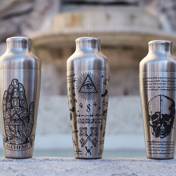 The Parisienne Chrono Alchemy Shaker is the perfect combination of Art and Style. The Alchemy line, designed and manufactured exclusively by Lumian Bar Tools, represents the new frontier of Barman equipment. Entirely handcrafted, the esoteric symbols engraved on steel intertwine with the alchemical science of modern mixology