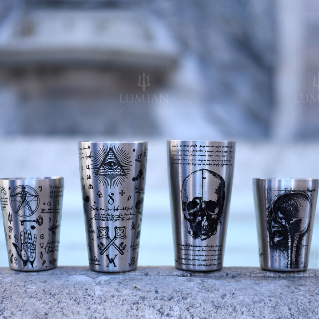 The New Boston shaker Yokai Leonardo is the perfect combination of Art and Style. The Leonardo line, designed and manufactured exclusively by Lumian Bar Tools, represents the new frontier of Barman equipment. Entirely handcrafted, the engravings of esoteric symbols intertwine with the alchemical science of modern mixology.